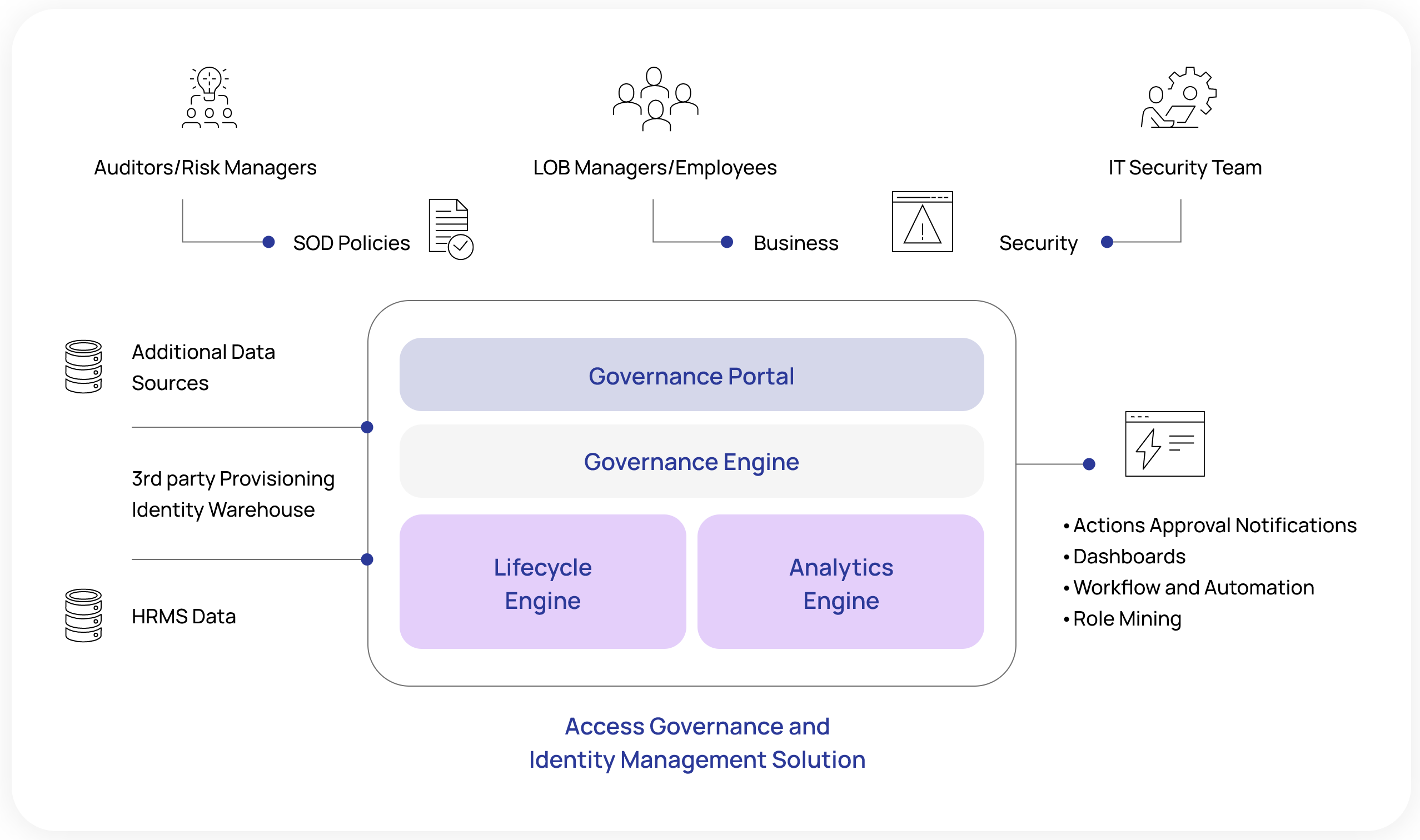 • Enable enterprises to manage access risks by governing access control lifecycles and administering digital identities.